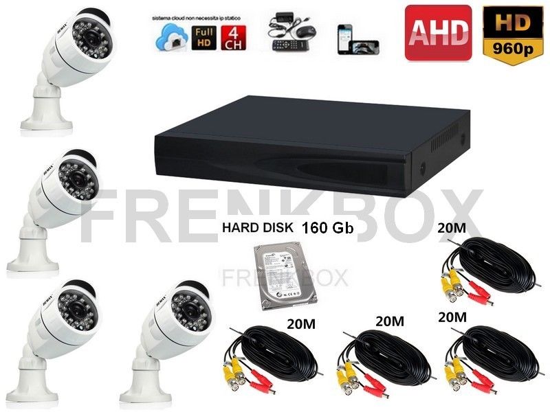 Kit videosorveglianza AHD DVR P2P 4 ch 160Gb Cloud Telecamere 1.3Mpx 1500tvl