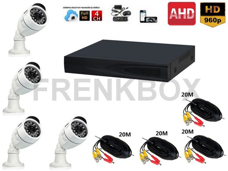 Kit videosorveglianza AHD DVR P2P 4 ch Cloud Telecamere 1.3Mpx 1500tvl