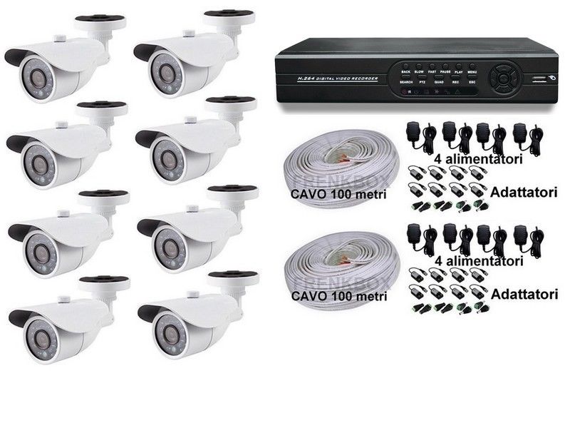 Kit videosorveglianza DVR P2P 8ch telecamere HD 1200TVL 200 metri cavo