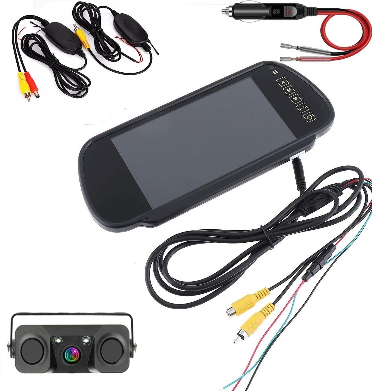 Questo kit comprende un monitor a forma di specchietto retrovisore con ampio schermo LCD da 7" una telecamera con visione grandangolare 170° che include 2 sensori di parcheggio e buser acustico inoltre la telecamera riprodurrà sullo schermo la griglia distanziometrica ed indicherà i centimetri la distanza che vi separa dagli ostacoli, in dotazione anche l'immancabile kit per connessione senza fili composto da un trasmettitore inoltre il kit include ricevitore e l' alimentatore che bisognerà inserire nella vostra presa accendisigari. Il tutto già camblato(già montato) da noi!