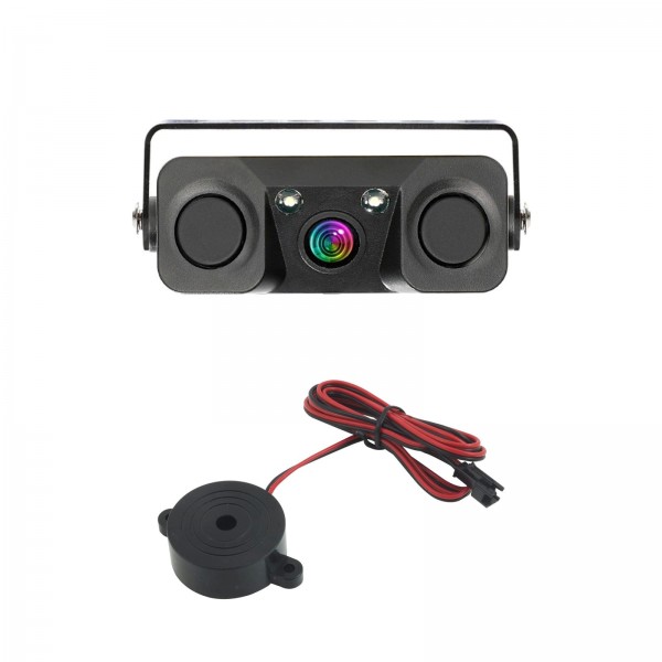 La telecamera include 2 sensori distanziometrici(sensori di parcheggio) ed un Buzer acustico(altoparlante di piccolissime dimensioni).